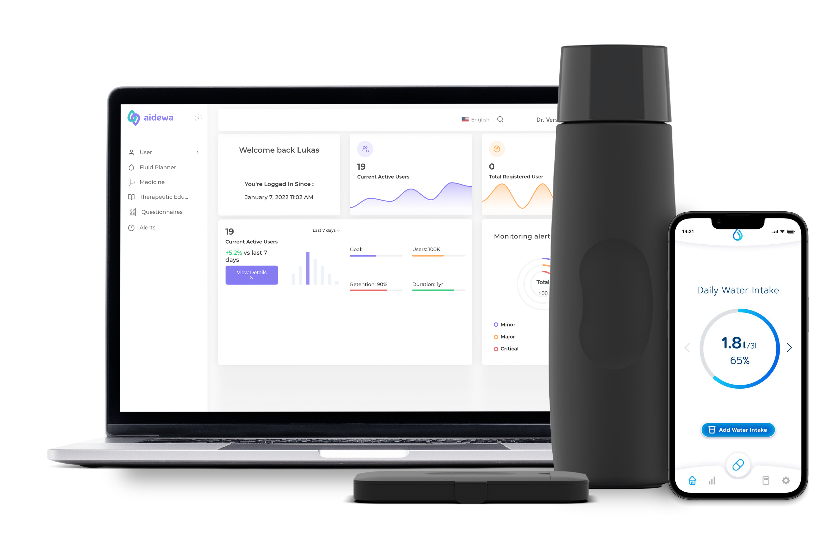 By continuously monitoring patients’ water intake, supplement tracking, and the pH value of their urine, AIDEWA® establishes a closed-loop system that allows nephrologists to provide real-time, personalized care adjustments.